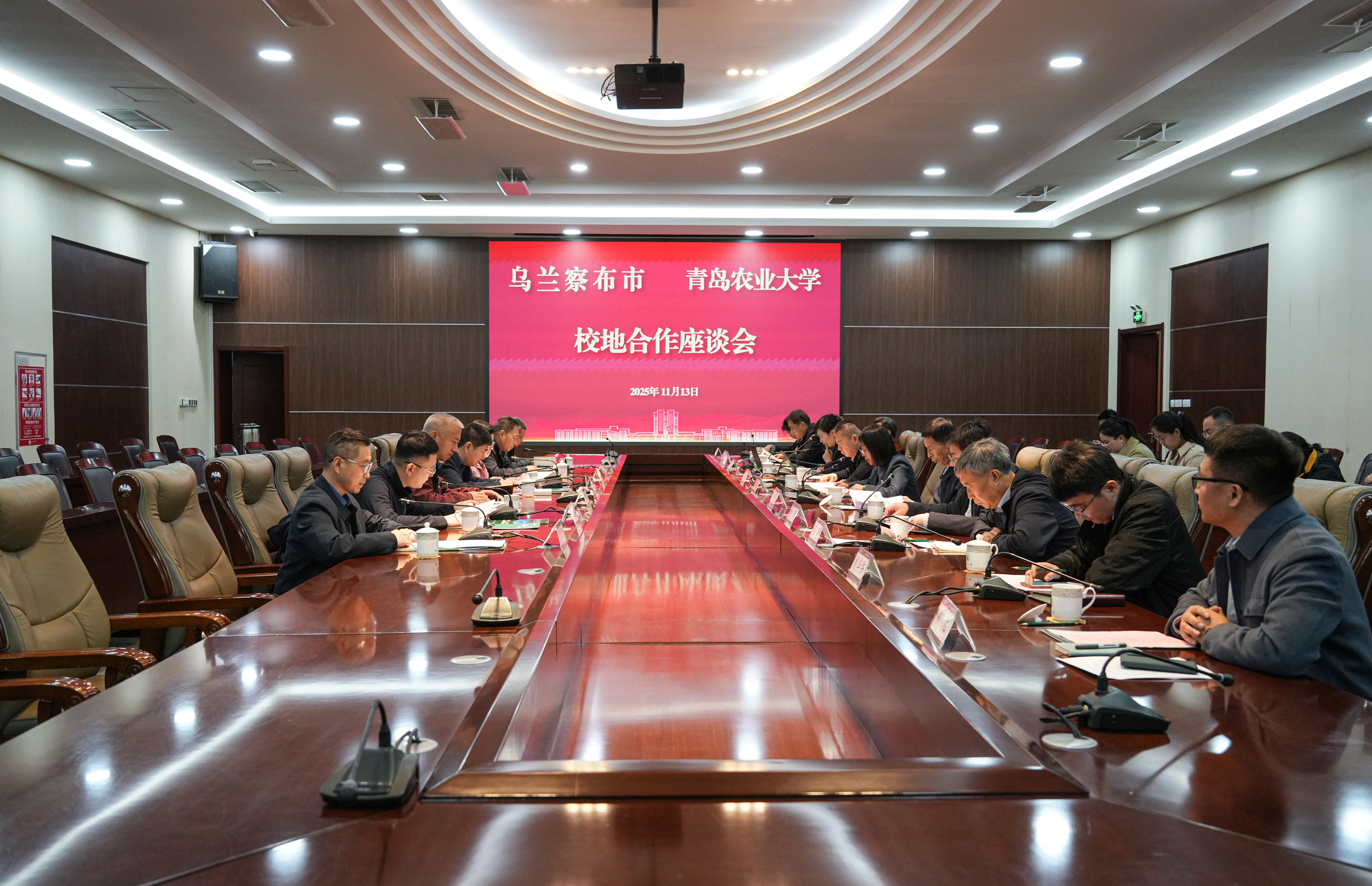2025年11月13日,内蒙古乌兰察布市副市长王镇海一行到访青岛农业大学,围绕深化校地合作、推动农牧业高质量发展开展调研交流。青岛农业大学党委委员、副校长张玉梅会见客人一行并出席座谈会,乌兰察布市投资促进局局长续集红、农牧局副局长周晓等陪同调研,学校科技处处长王华森主持座谈。